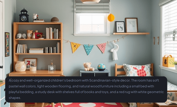 Type your design ideas, from color schemes to furniture styles, and watch as the AI generates a custom space based on your description.