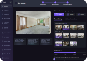 Use HomeDesignsAI to redesign any home in seconds: AI decoration, AI Interior Design, Exterior AI, Landscaping AI, House AI.