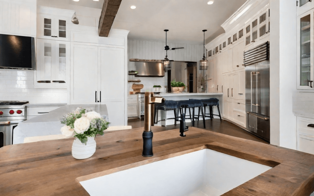 • Embrace the Beauty of Wood: We brought out the rich warmth of those existing wood tones – an absolute must for a cozy modern farmhouse kitchen.